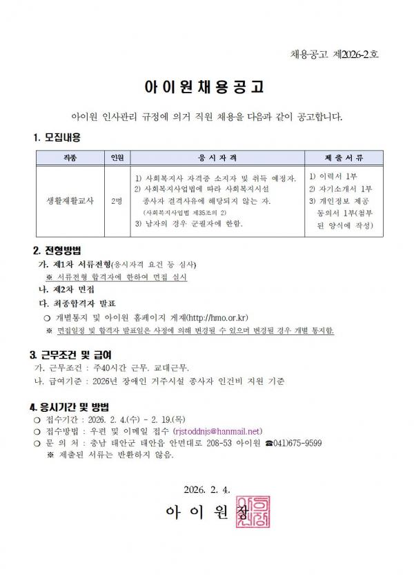 아이원 채용공고 제2026-2호